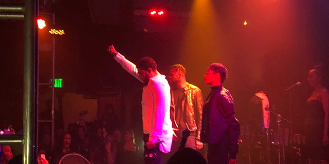 Smollett onstage during his concert at The Troubadour on Feb. 2, 2019, in West Hollywood, Calif., his first public appearance after reporting he was attacked. The actor and R&B singer Smollett opened the concert with an emotional speech, saying he had to play the show because he couldn’t let his attackers win. (AP)